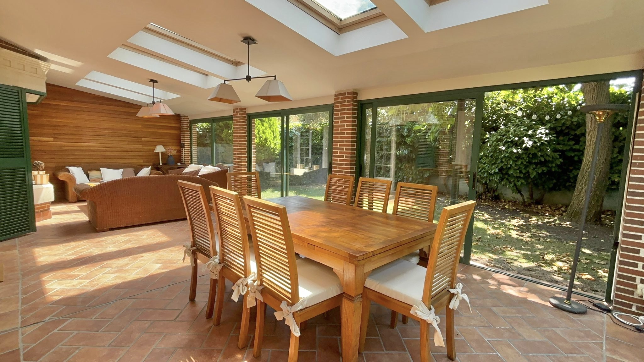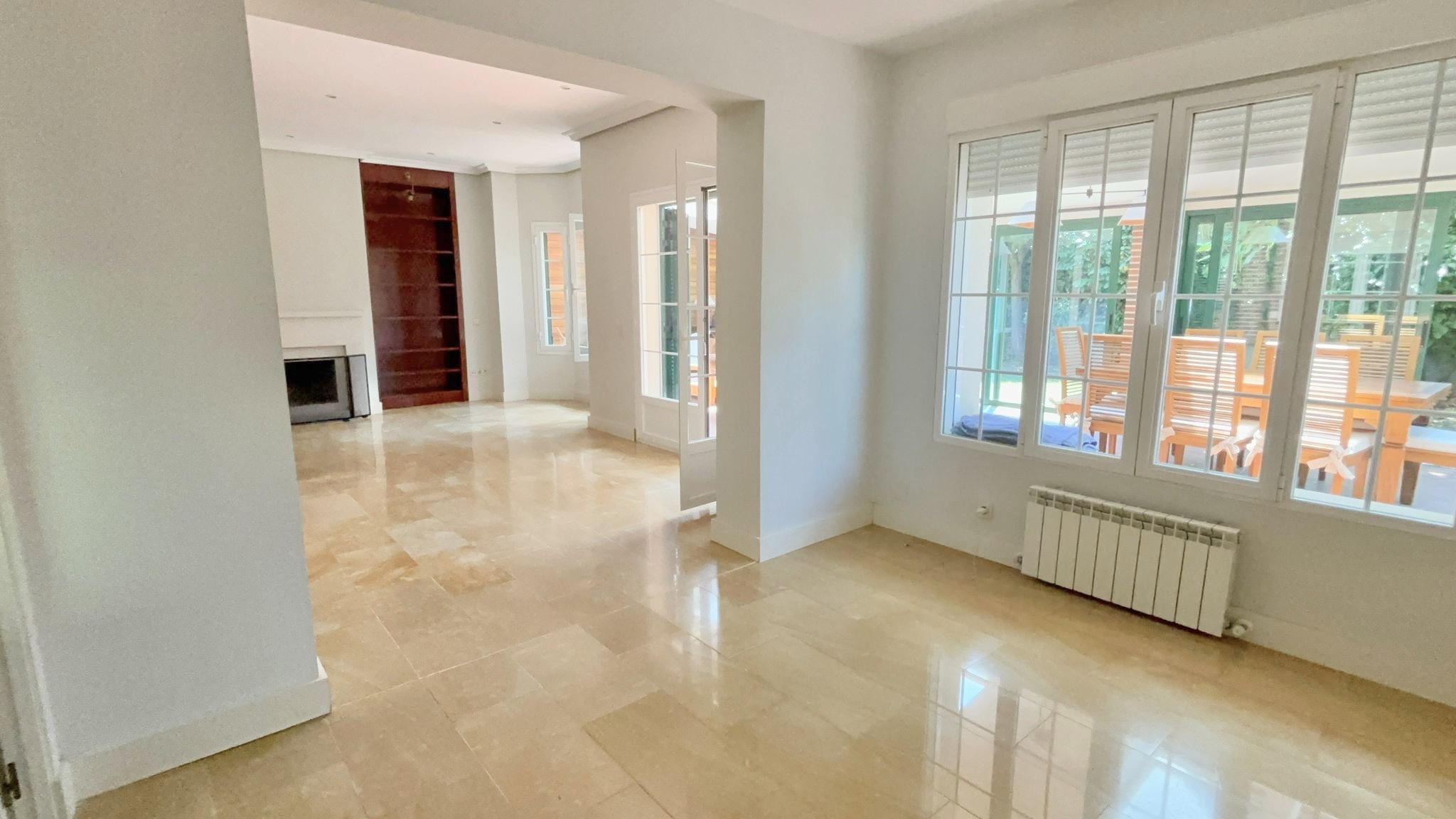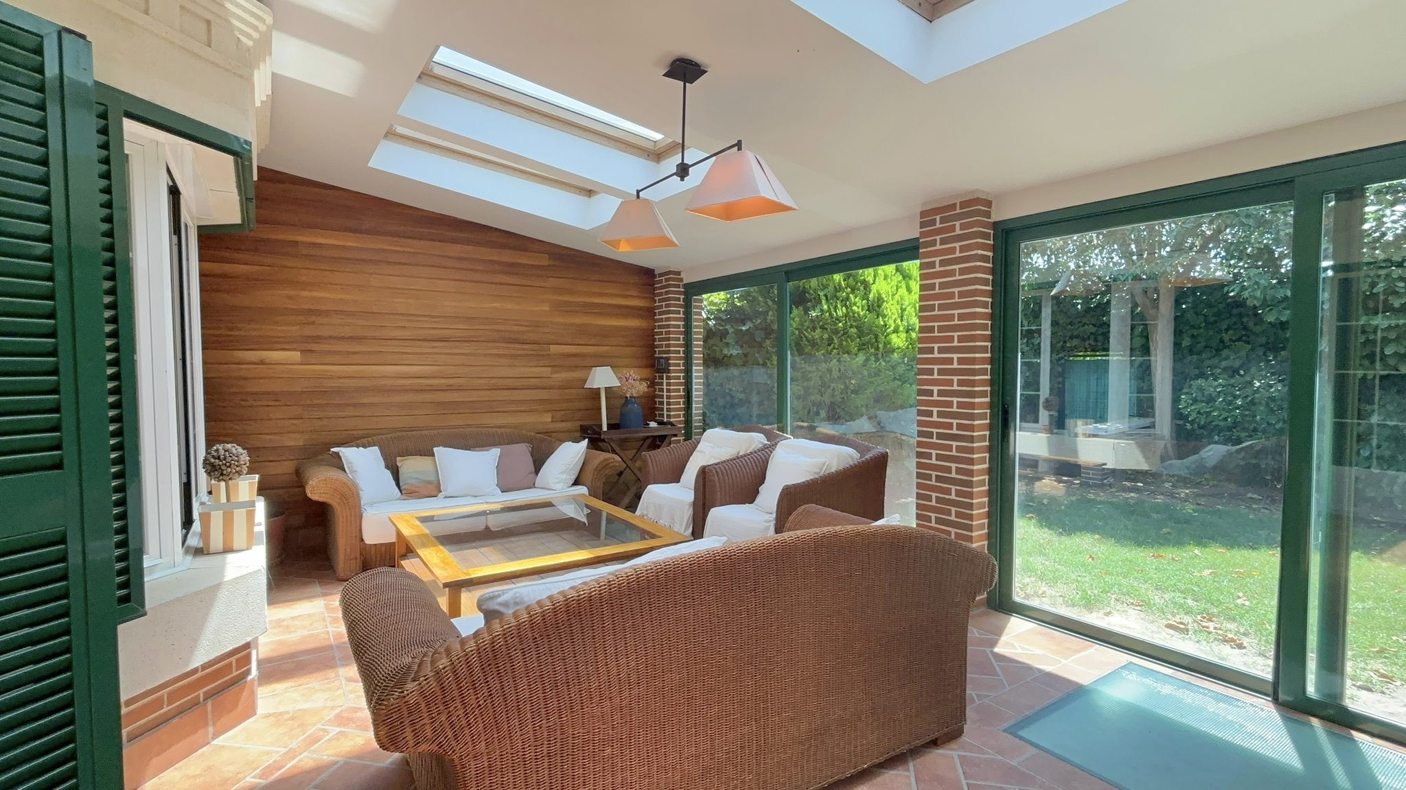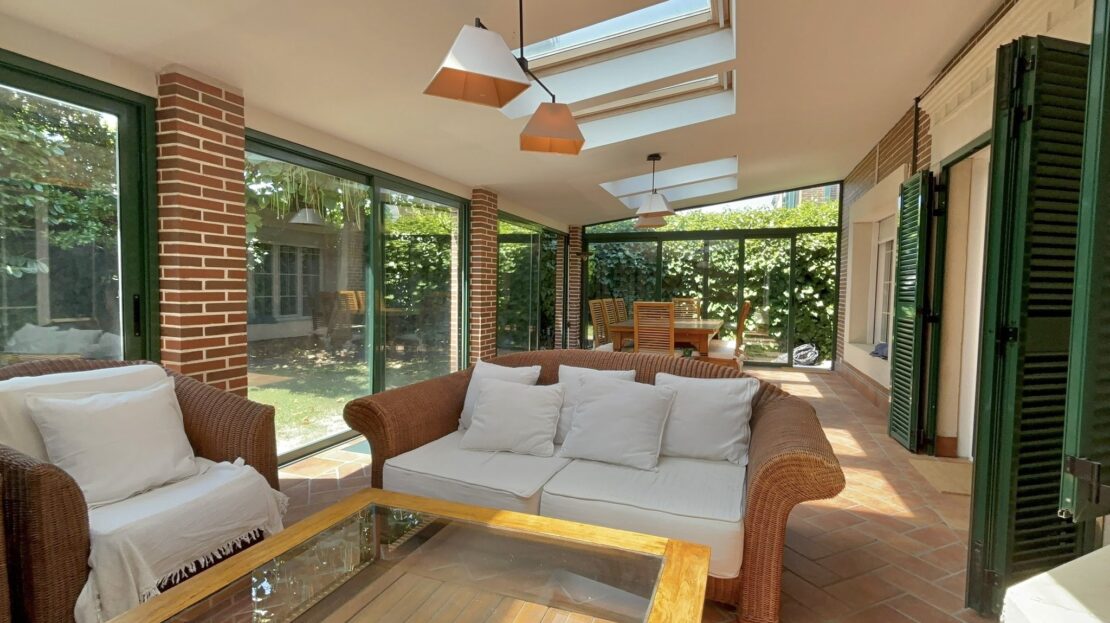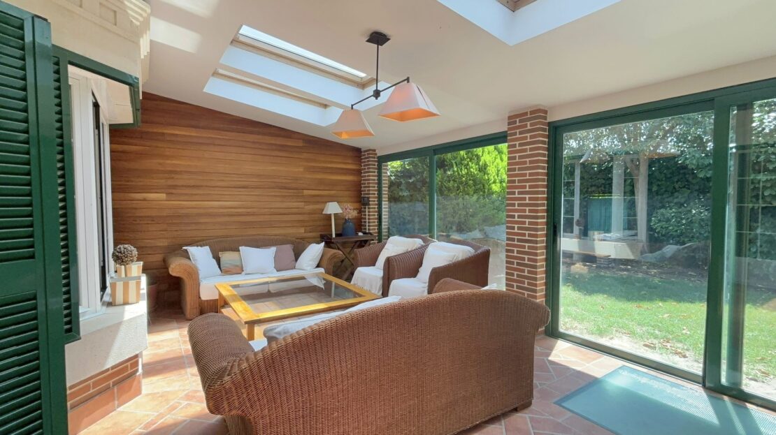 •Planta principal: Cocina moderna con zona de comedor, equipada con electrodomésticos de alta gama. Despacho, amplio salón con comedor independiente y acceso directo al jardín privado con porche cubierto y cerramiento metálico desmontable, ideal para disfrutar todo el año.